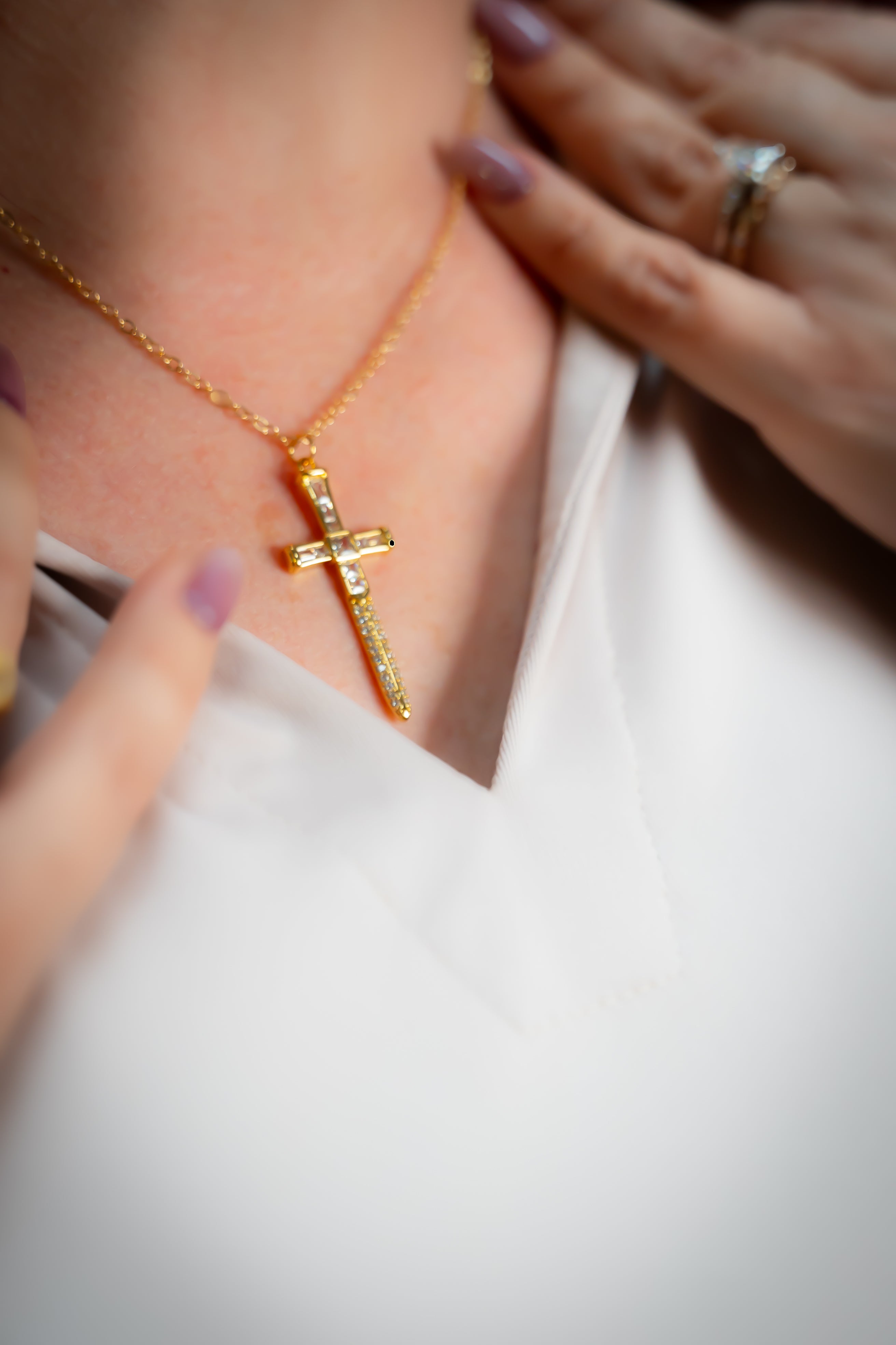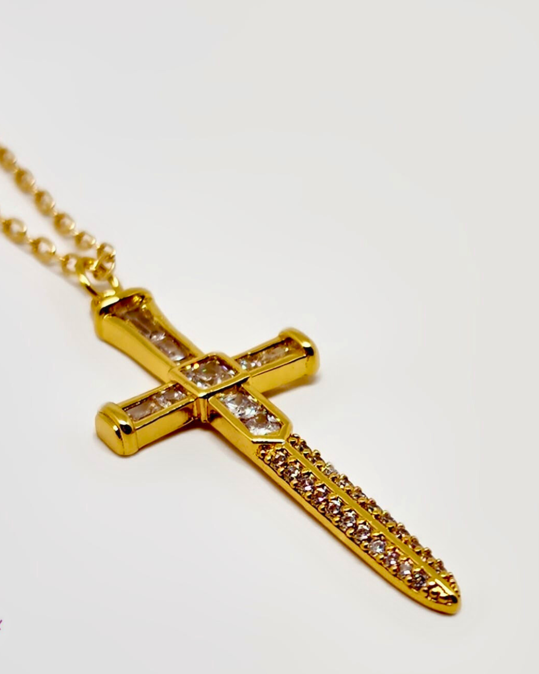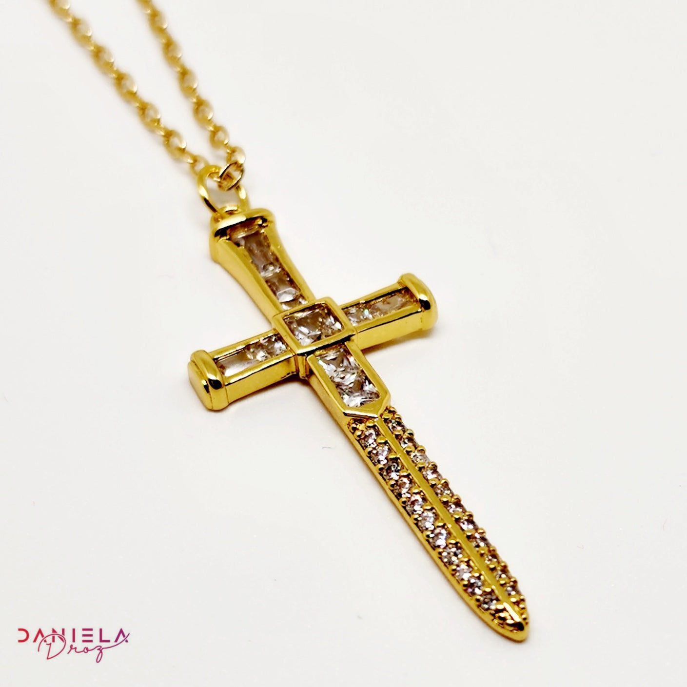 cadena de 18" pulgadas confeccioanda a mano con detalles en zirconia y baño de oro 18k.