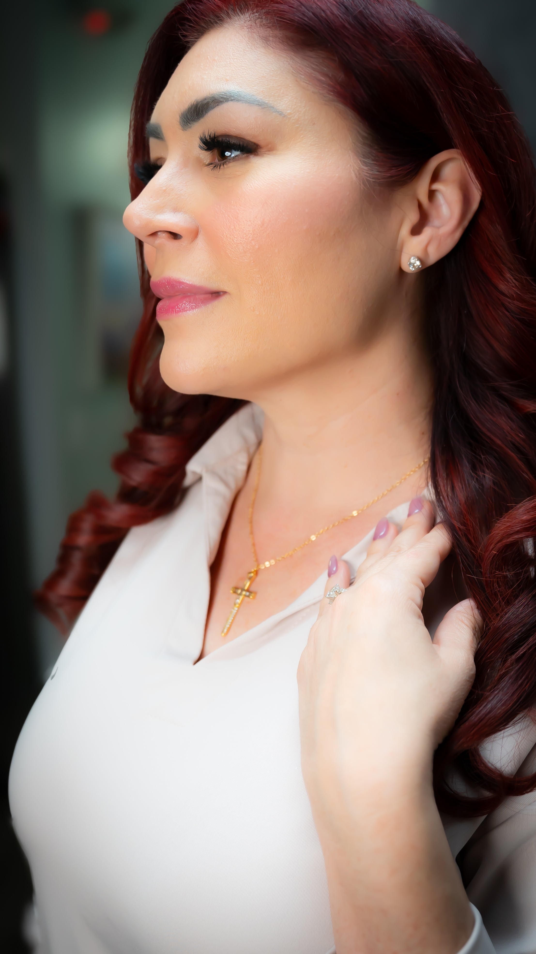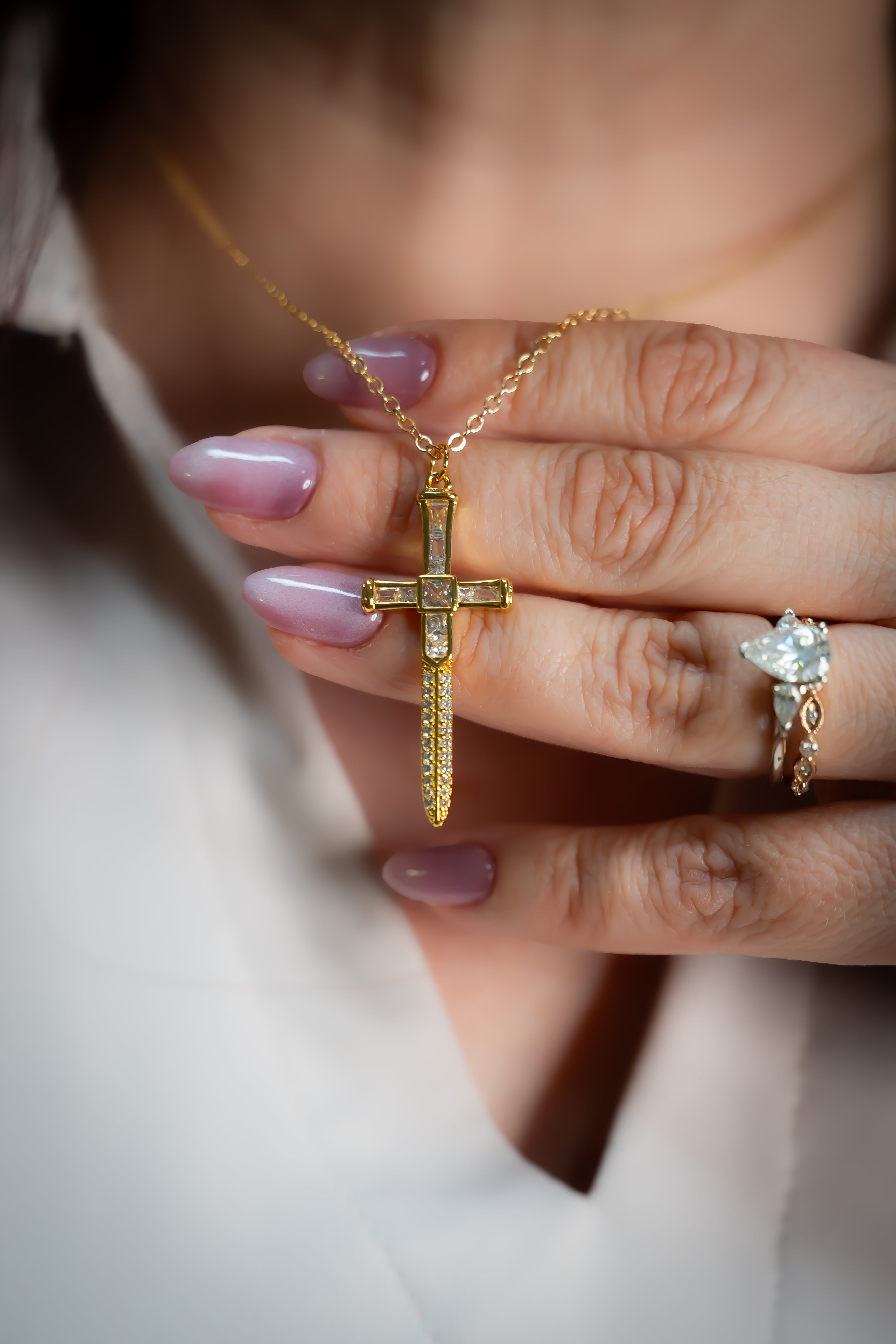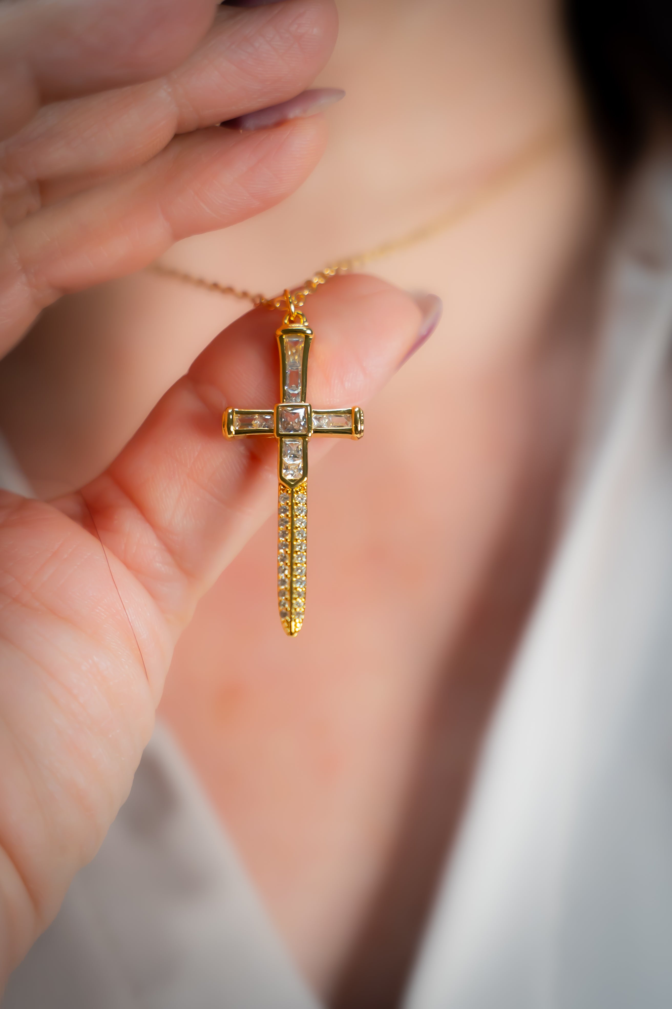 cadena de 18" pulgadas confeccioanda a mano con detalles en zirconia y baño de oro 18k.